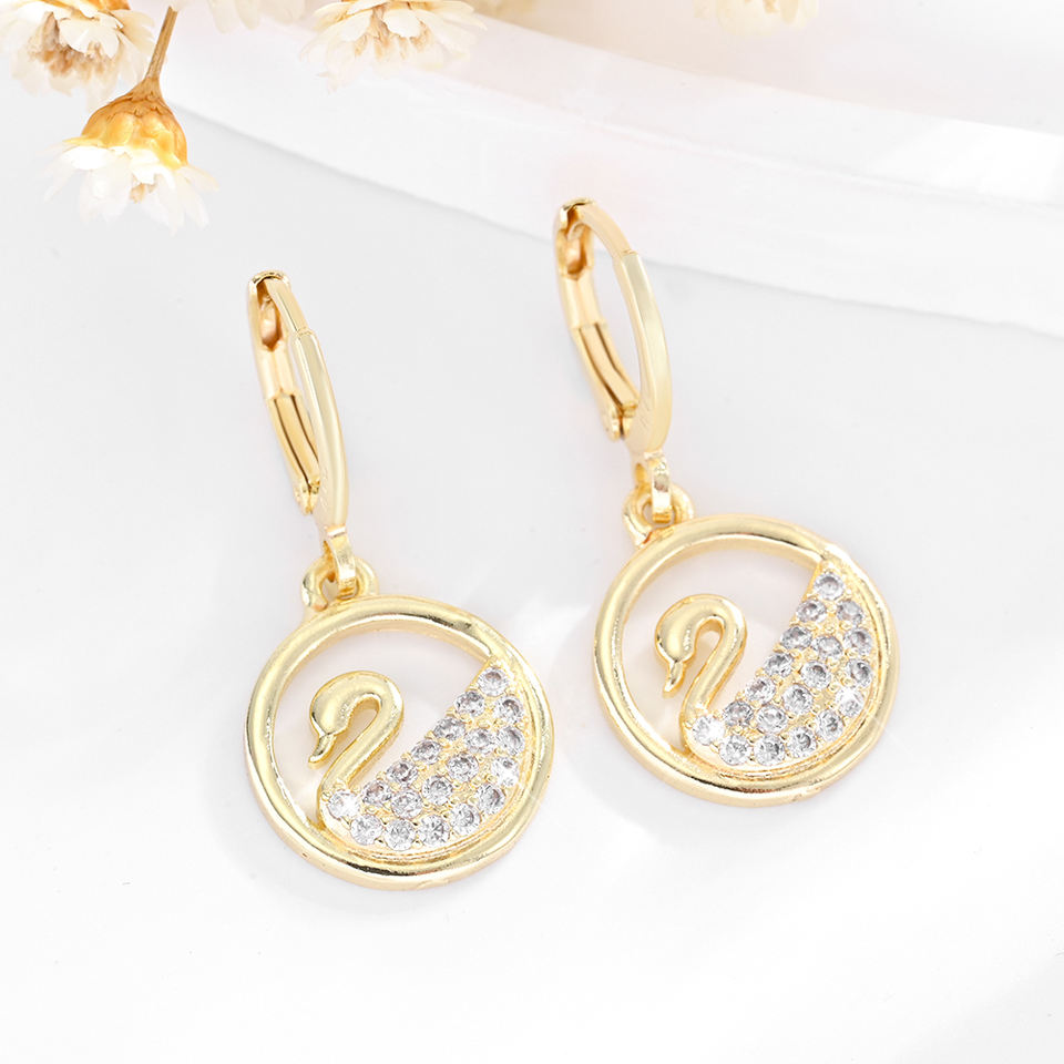 2025คุณภาพสูงดีใหม่ล่าสุดหงส์กลม14K ทองแดงชุบทองเพทายสวมใส่ทุกวันต่างหูทองเหลืองเครื่องประดับของผู้หญิง