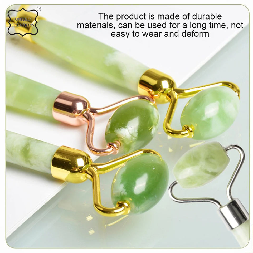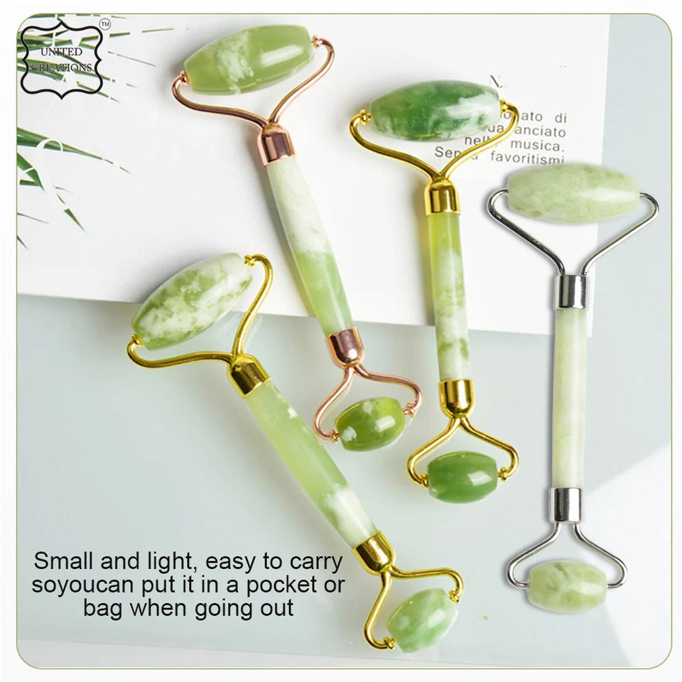ชุดลูกกลิ้งนวดหน้าลูกกลิ้งหยกธรรมชาติสีเขียว2025บรรจุในกล่อง
