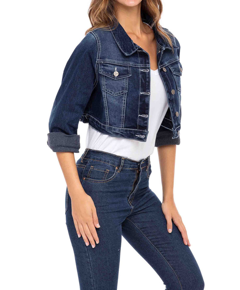 2025แจ็คเก็ตผ้าเดนิมสำหรับผู้หญิงแจ็กเก็ตผ้าฝ้ายดีไซน์แบบครอปเข้ารูปแขนยาวลำลองกลางแจ้ง