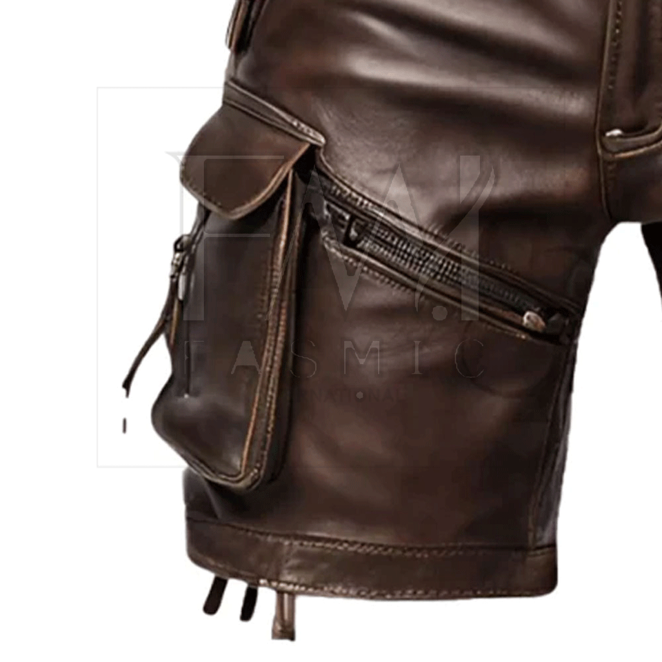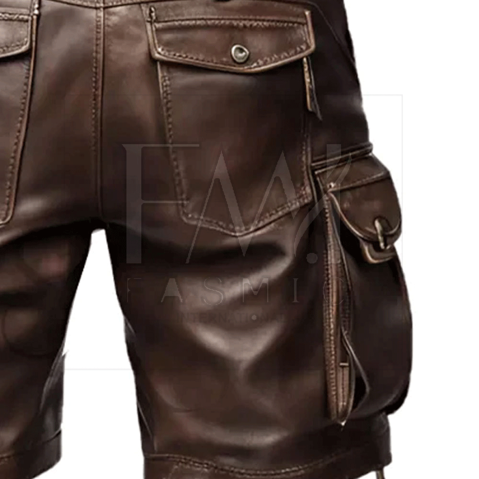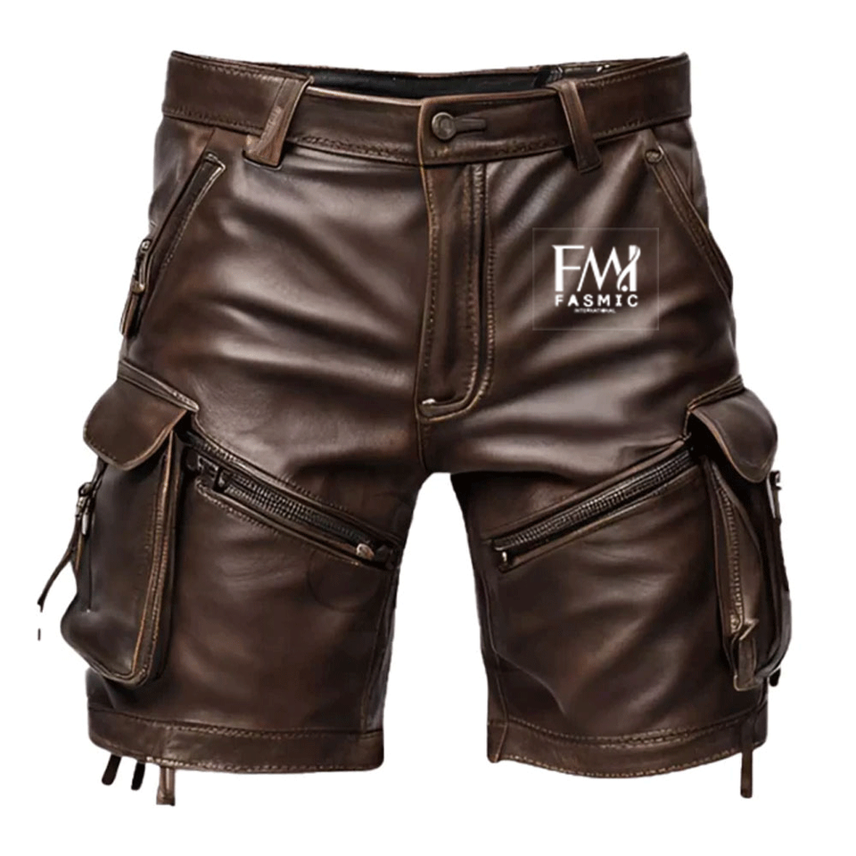 กางเกงขาสั้นหนังแท้คุณภาพสูงสำหรับผู้ชาย ปี 2025 ผ้าหนังแท้ 100% แห้งเร็ว เอวยางยืด ติดกระดุม รับทำโลโก้ตามสั่ง บริการ OEM