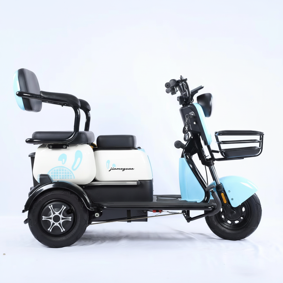 รถสามล้อไฟฟ้าคุณภาพสูง ปี 2025 ผลิตในเม็กซิโก 3 ล้อ 2 ที่นั่ง เกียร์เดียว 48V โครงเหล็กกล้าคาร์บอนสูง เบรกดรัม สำหรับการพักผ่อน
