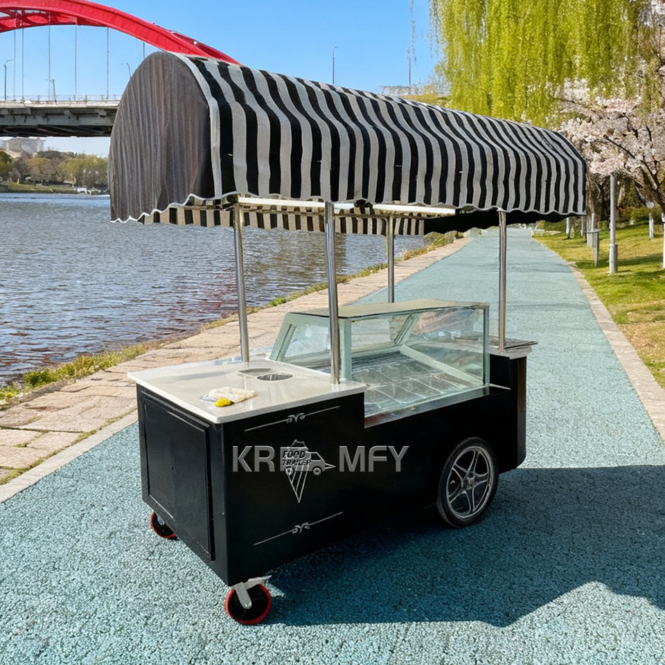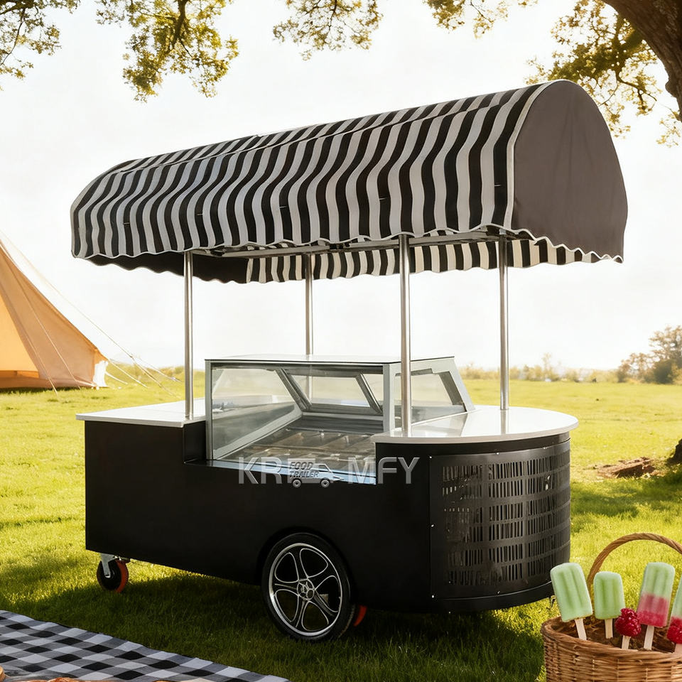 2025 High Quality Popsicle Flower Cart With Freezer Italian Gelato Ice Cream Display Cabinet