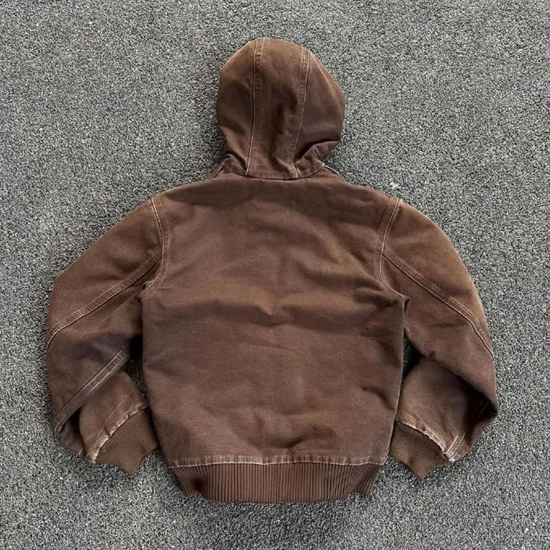 เสื้อฮู้ดมีซิปสำหรับผู้ชายผ้าคอตตอนโอเวอร์ไซส์ลายโลโก้2025