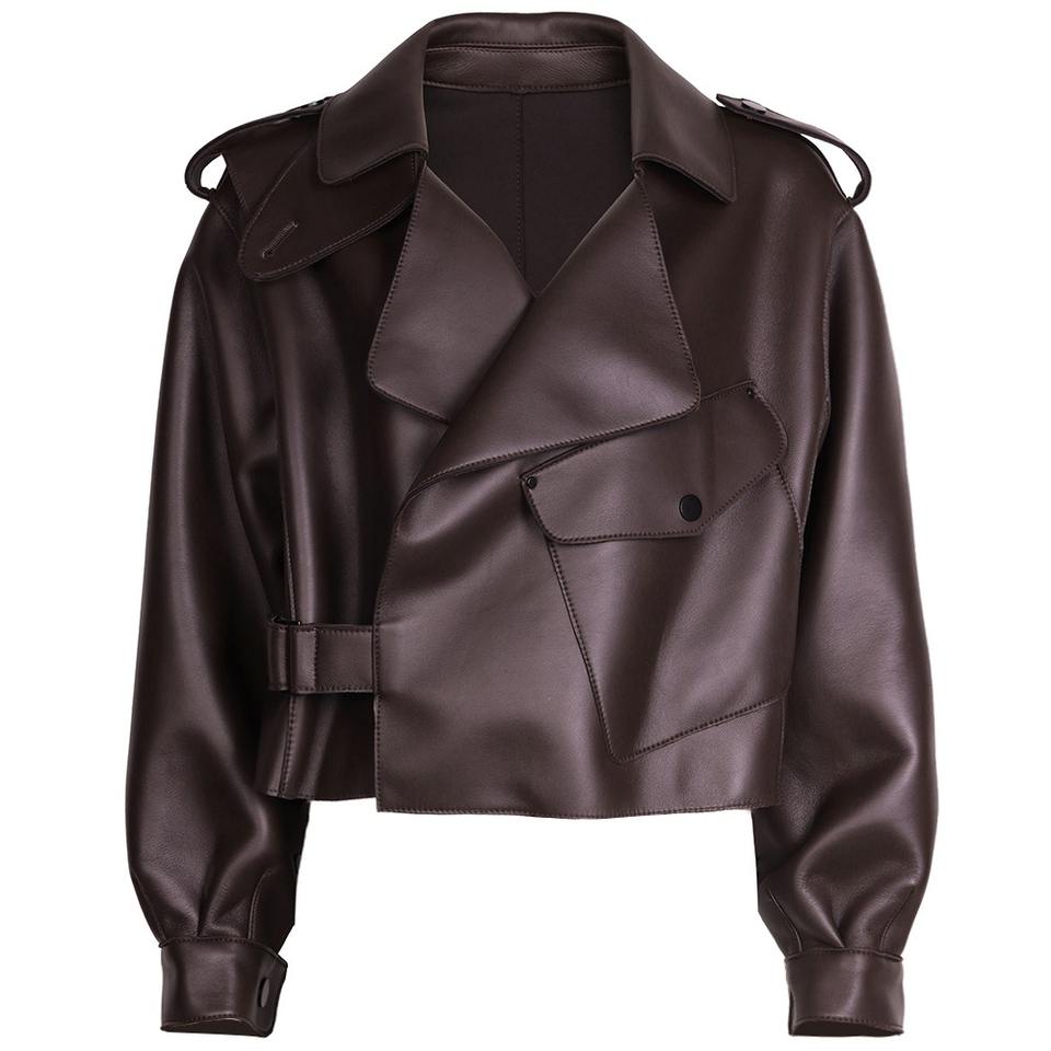 แจ็กเก็ตหนังแกะแท้สำหรับผู้หญิงแจ็กเก็ตหนังแท้สำหรับ2025เบอร์กันดีเรียบง่าย