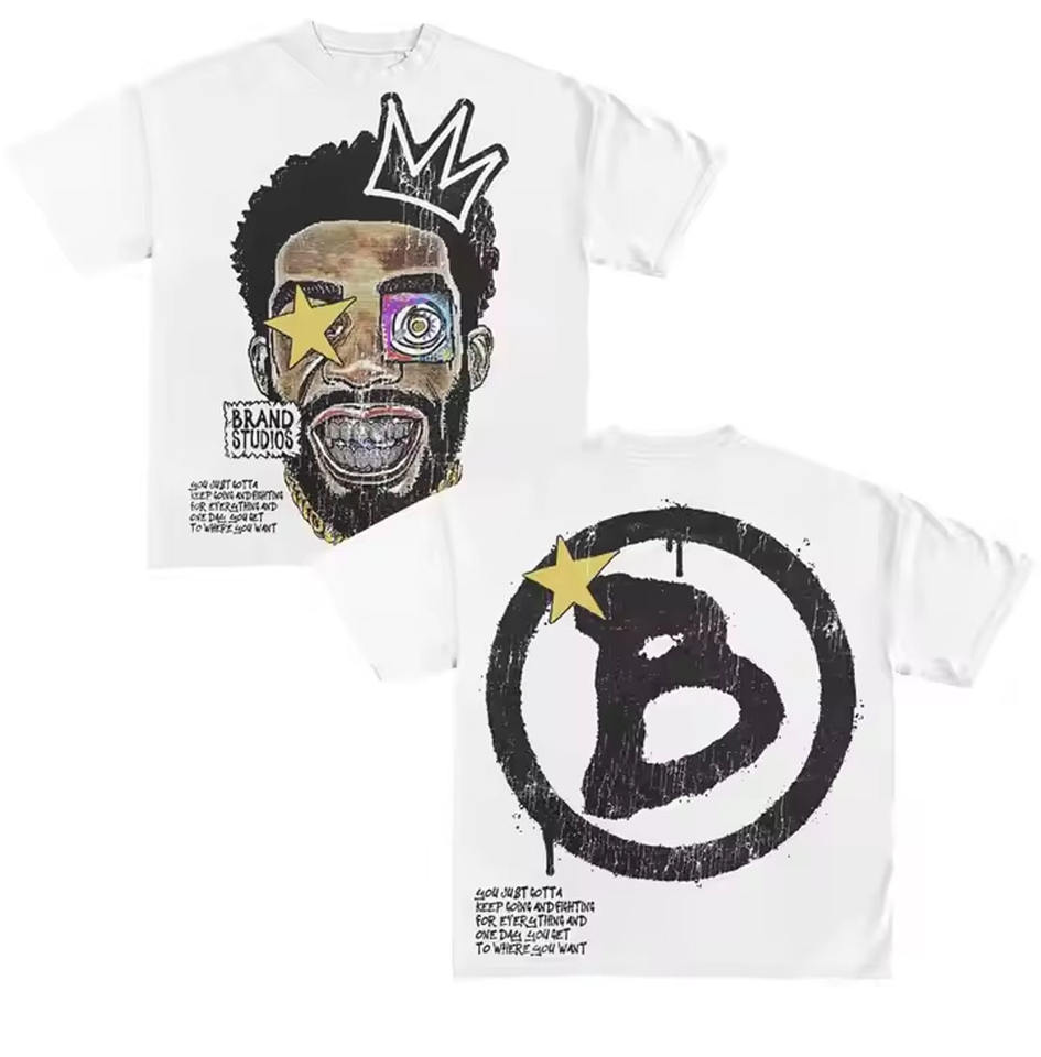 2025เสื้อยืดผ้าฝ้าย100% แนวสตรีทแวร์สำหรับผู้ชายทรงหลวมใส่ได้ทั้งชายและหญิงพิมพ์ลายหน้าจอไหล่
