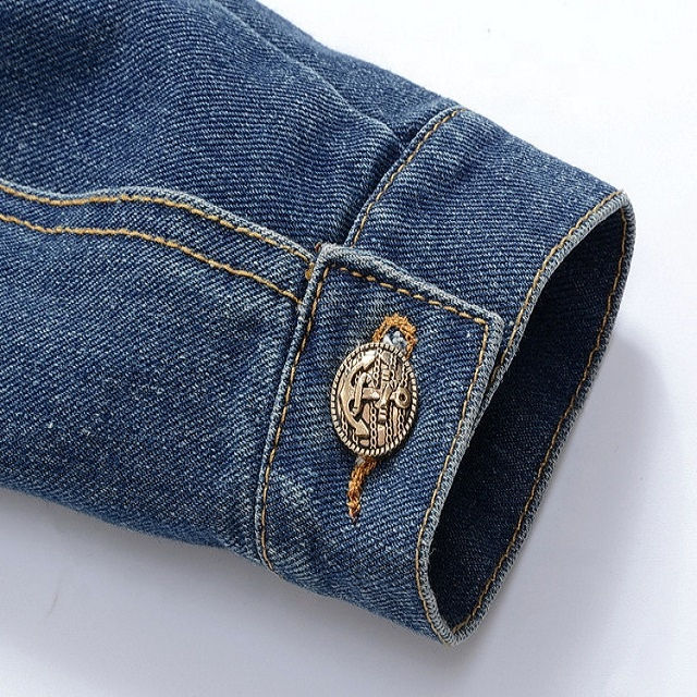 เสื้อแจ็กเก็ตกลางแจ้งสำหรับผู้ชายเสื้อแจ็กเก็ตผ้ายีนส์ปักลายเสื้อแจ็คเก็ตยุทธวิธีแขนยาวผ้าฝ้าย100%