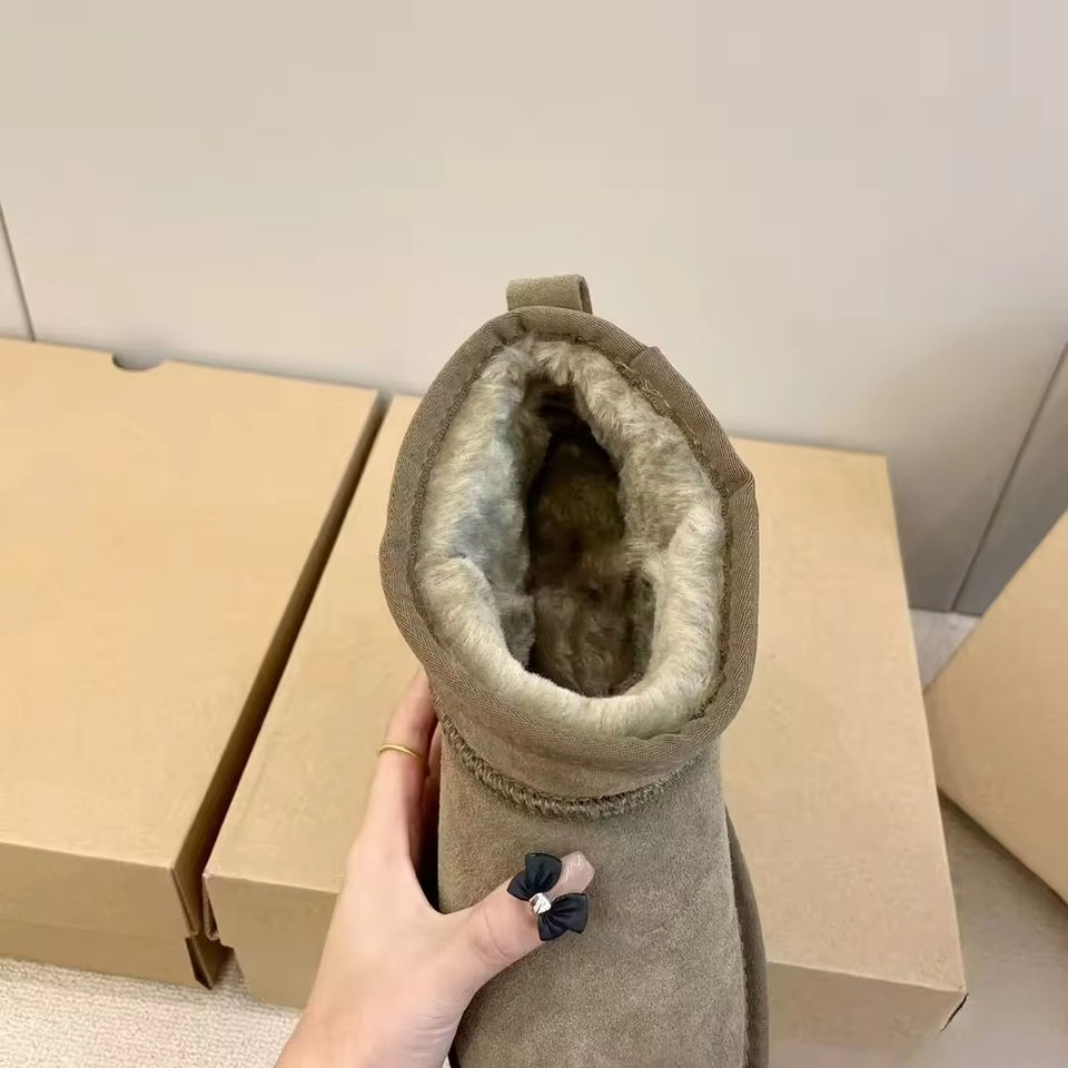 รองเท้าบูท Uggs ดีไซน์เนอร์คุณภาพสูง ปี 2025 หรูหราทันสมัย สำหรับทุกเพศ ทำจากขนสัตว์และหนัง ให้ความอบอุ่น กันลื่น เหมาะสำหรับฤดูใบไม้ร่วงและฤดูหนาว แบบหุ้มข้อกลาง ส้นหนา