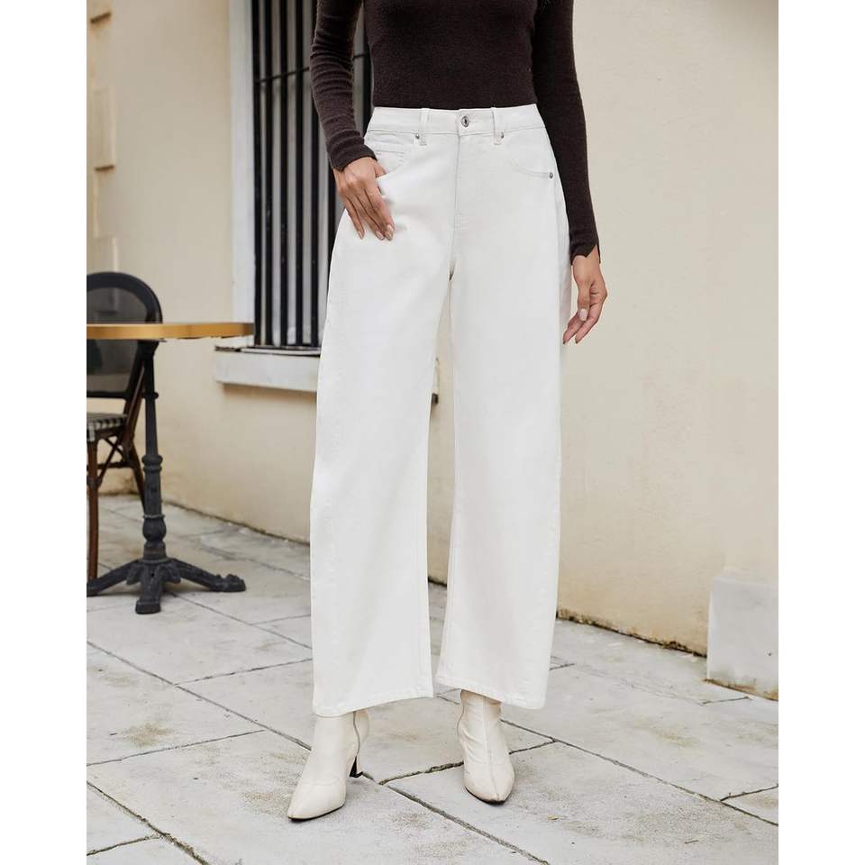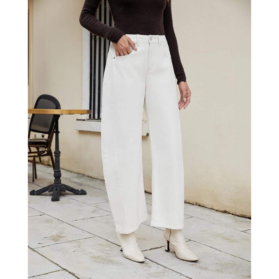 กางเกงยีนส์ขายาวเอวสูงสำหรับผู้หญิง, กางเกงยีนส์เอวสูงทรงหลวมระบายอากาศได้ดีทันสมัย
