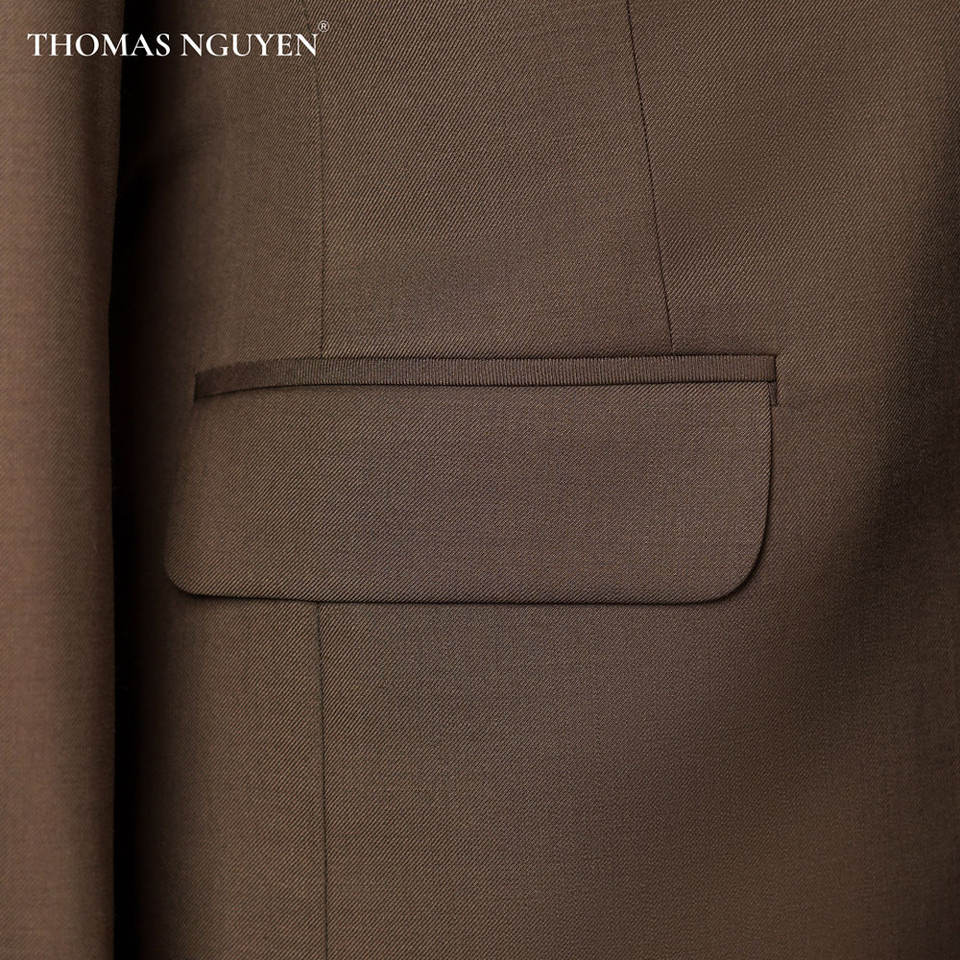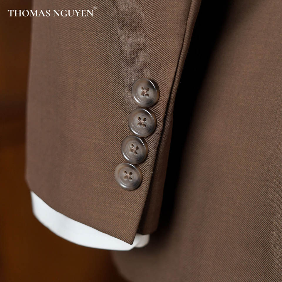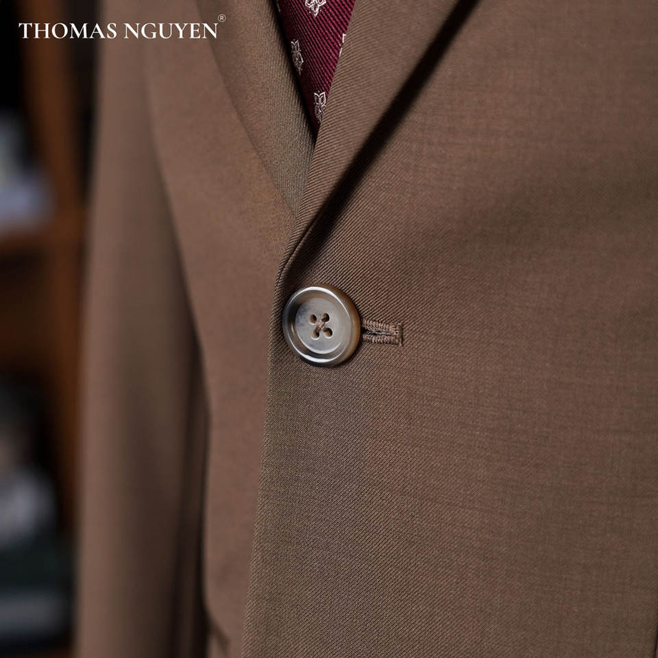 ชุดสูทสองชิ้นสำหรับผู้ชายแฟชั่นชั้นสูง2025แจ็คเก็ตสูทสีน้ำตาลดินตัดตามสั่งและกางเกงขายาวคอลเลกชันสีธรรมชาติผลิตในเวียดนาม