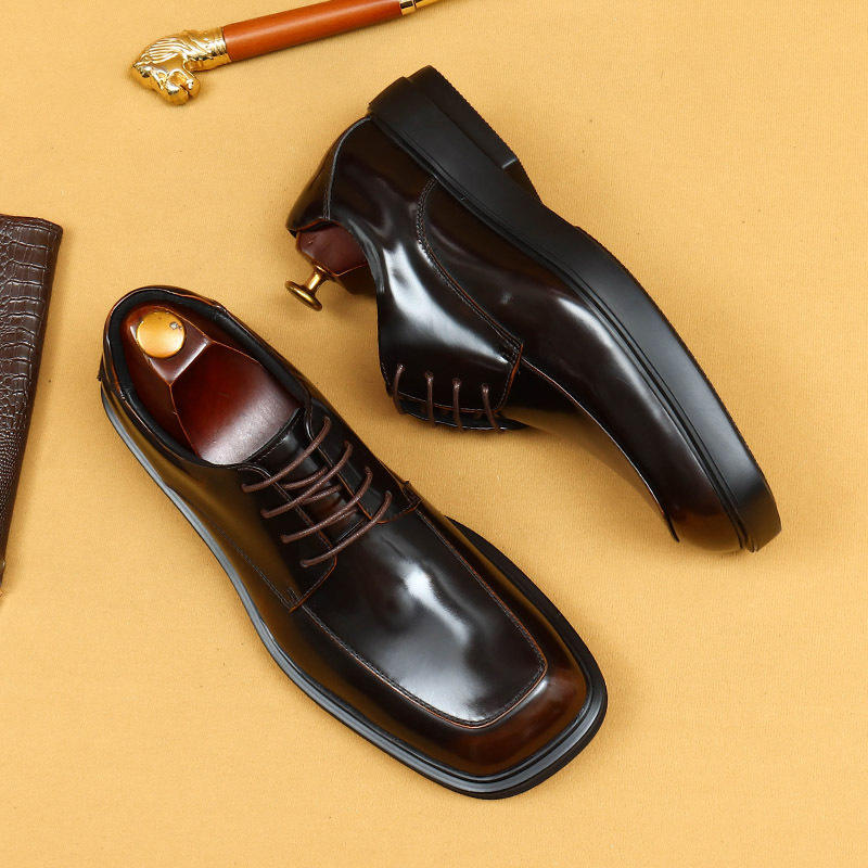 รองเท้าอ็อกซ์ฟอร์ดหนังแท้คุณภาพสูงสำหรับผู้ชายทรงหัวเหลี่ยม สไตล์บริติชทาวเวอร์ รุ่นใหม่ EVERGREEN ปี 2025 เหมาะสำหรับใส่ทำงานและลำลอง