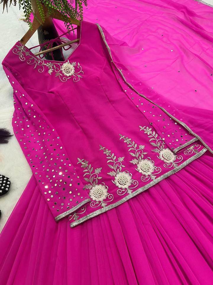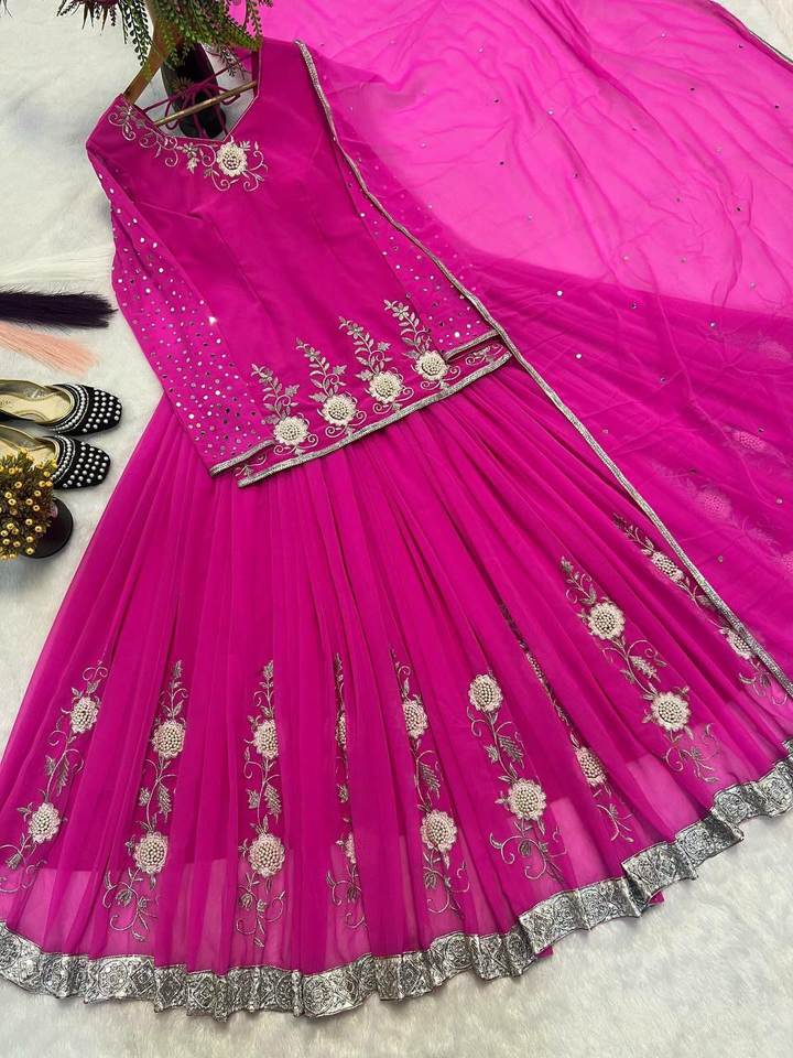 2025 Hina Khan ผ้าจอร์เจียเทียมสี Rani สไตล์บอลลีวู้ด kurti & lahenga พร้อมชุด dupatta ราคาไม่แพง