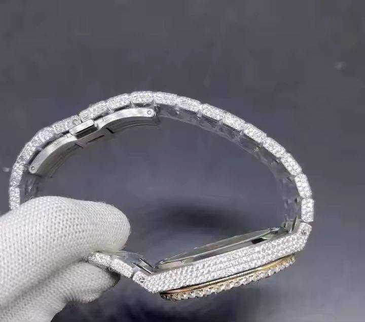 2025แบรนด์ฮอปเครื่องประดับเพชรน้ำแข็งเต็มรูปแบบนาฬิกาข้อมือสีทองนาฬิกาควอตซ์แฟชั่นสำหรับผู้ชายทรงแปดเหลี่ยม