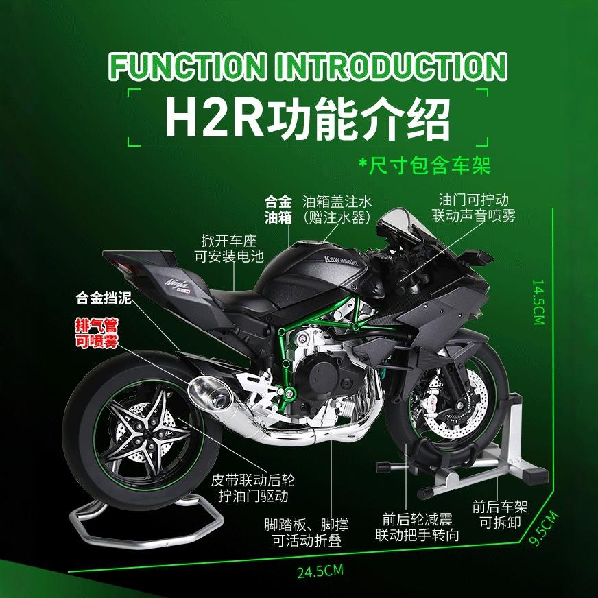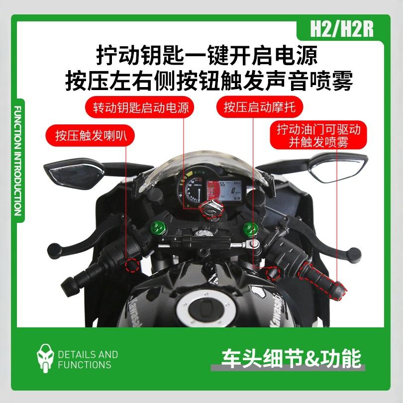 2025 Hot New Style Diecast 1:9 Kawasaki Ninja H2R car with throttle Open Spray Electric Fun Toy High Tech Novelties Metal Toy