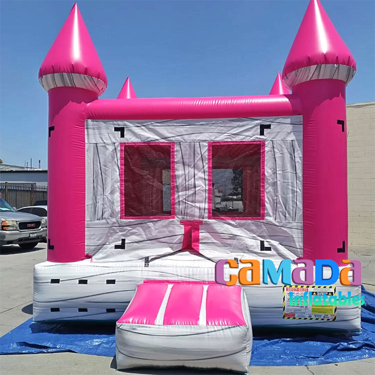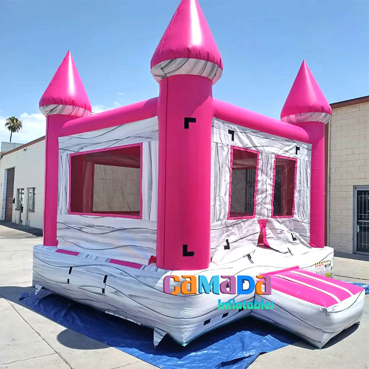 บ้านลมเป่าลมสีชมพูอมเทาลายหินอ่อน ปี 2025 สำหรับสนามหลังบ้าน พื้นหนาพิเศษ เกรดเชิงพาณิชย์ รับน้ำหนักได้ 1000 กก. ติดตั้งง่าย