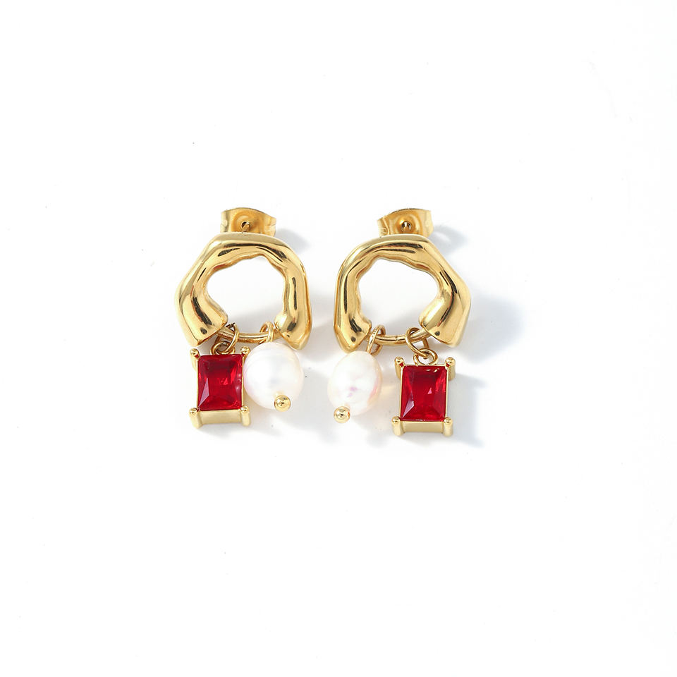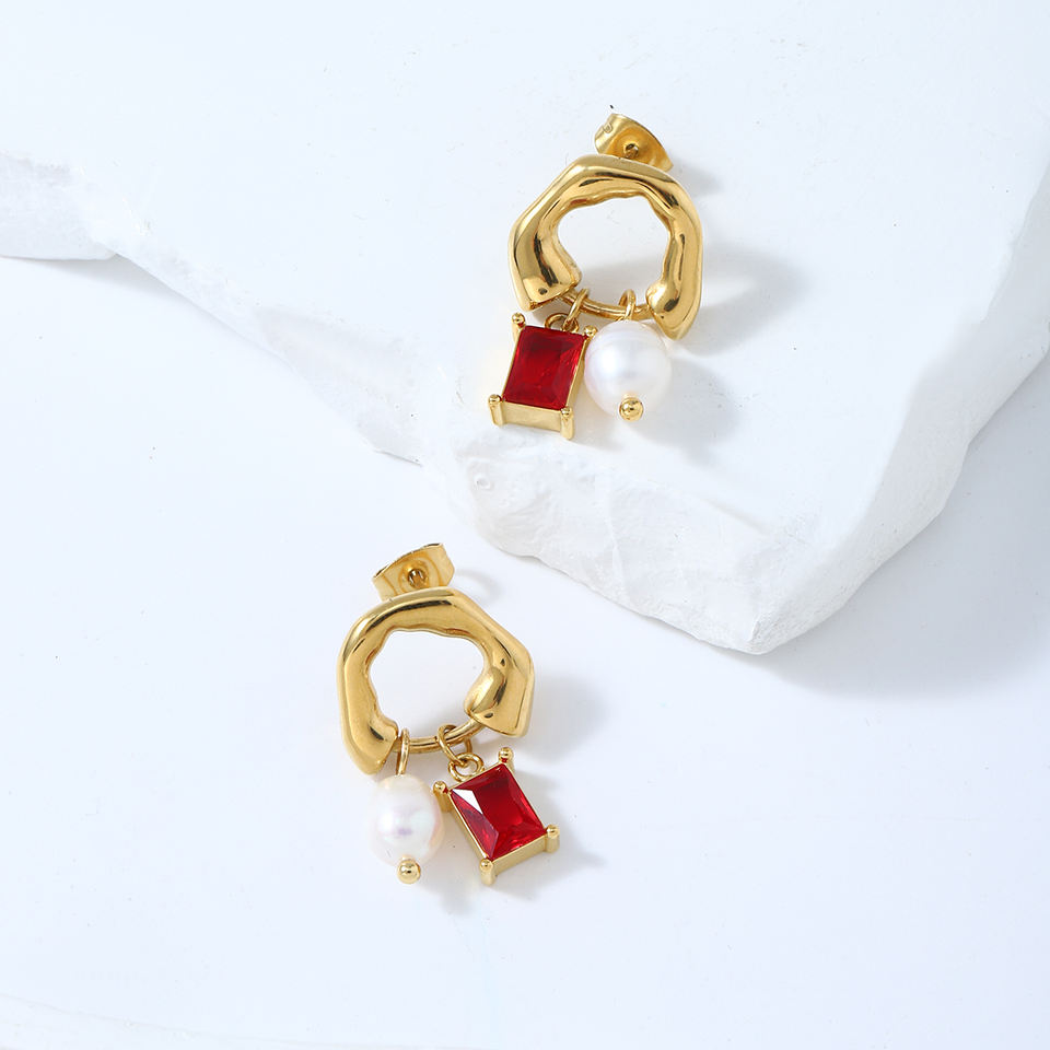 2025ต่างหูห้อยเซอร์โคเนียทรงลูกบาศก์ชุบทอง18K ทำจากสเตนเลสต่างหูจี้ไข่มุกน้ำจืด