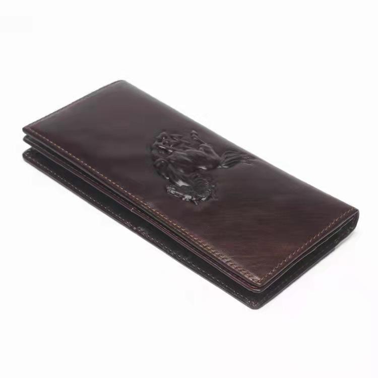 2025กระเป๋าสตางค์หนังแท้ RFID ยาวสำหรับผู้ชายลายนูนรูปม้าดีไซน์เรียบง่ายมองเห็นได้ชัดเจน