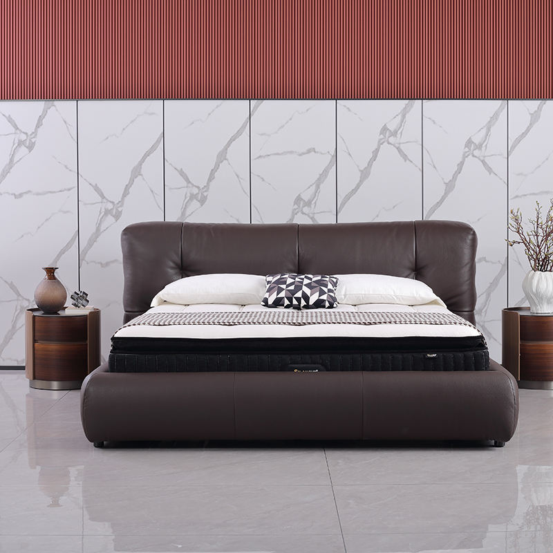 เตียงหนังแท้ขนาดคิงไซส์2025ทันสมัยหรูหราเฟอร์นิเจอร์ห้องนอนใหญ่สำหรับโรงแรมบ้าน