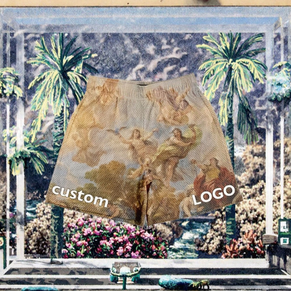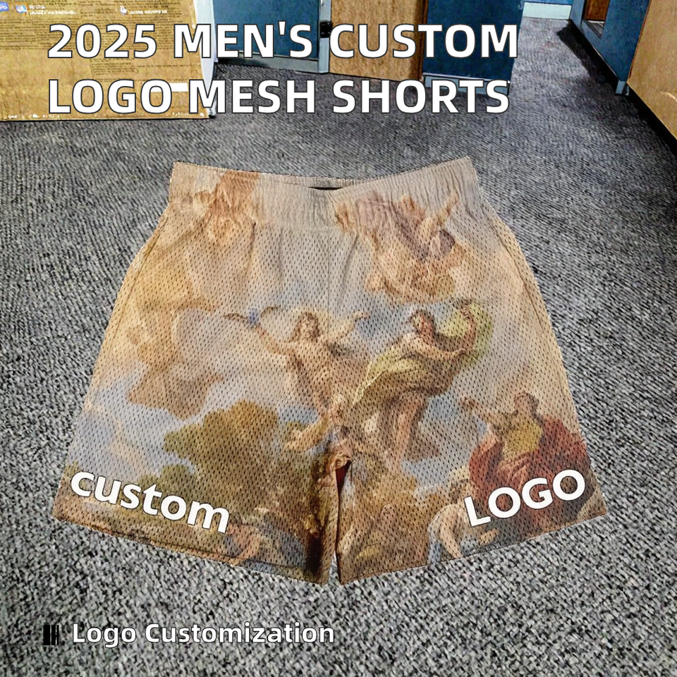 กางเกงออกกำลังกายขาสั้นของผู้ชายกางเกงขาสั้นตาข่ายระบายอากาศได้ดีแห้งเร็วสำหรับฤดูร้อนโลโก้ตามสั่งสไตล์สตรีท