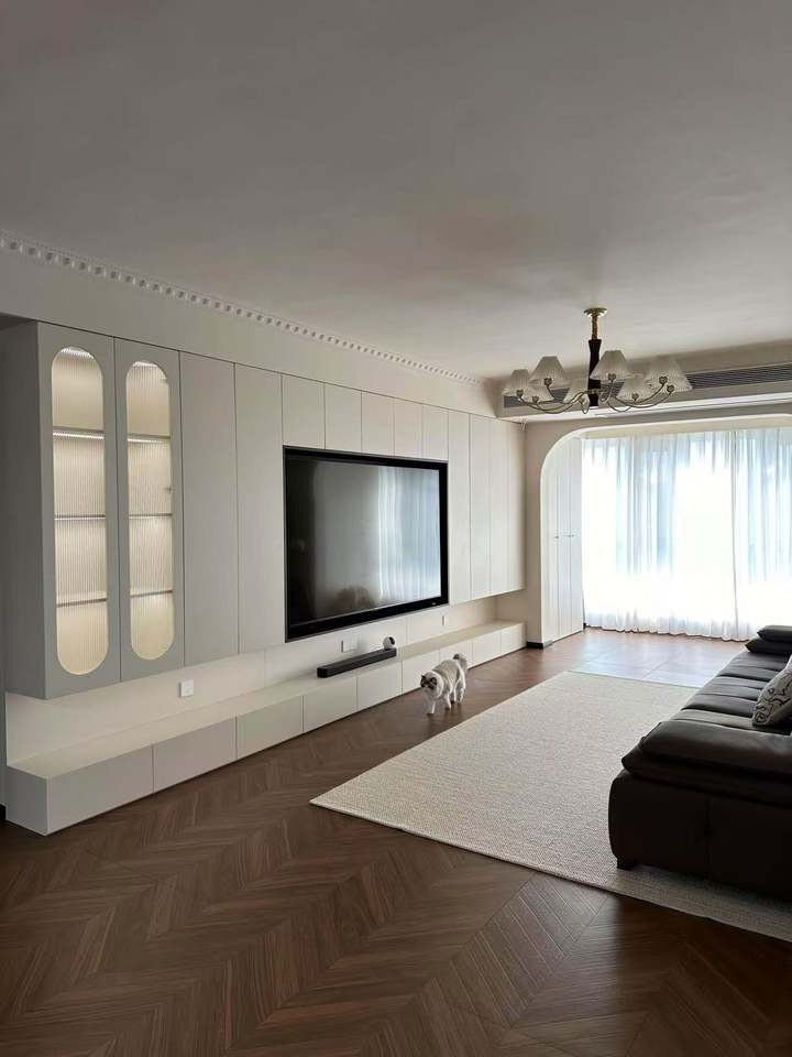 2025ขายไฟสไตล์โมเดิร์นตู้ทีวีไม้เนื้อแข็งที่เก็บของเต็มผนังเฟอร์นิเจอร์ห้องนั่งเล่นแบบบูรณาการ