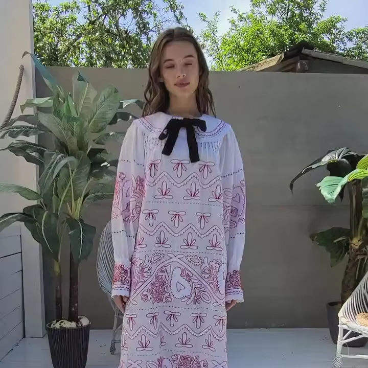 2025เดรสยาวสไตล์โบฮีเมียนสำหรับผู้หญิงเดรสลำลองคอปกแขนพองสำหรับงานแต่งงานผ้าลินินปักลายสำหรับแขกฤดูร้อน
