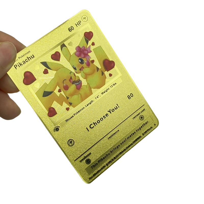 การ์ดโปเกมอนโลหะสีทองรูปหัวใจ วาเลนไทน์ 2025 ขายดีที่สุด ของขวัญวันวาเลนไทน์ที่ดีที่สุด อีวุย พิคาชู ฉันเลือกคุณ ฉันรักคุณ