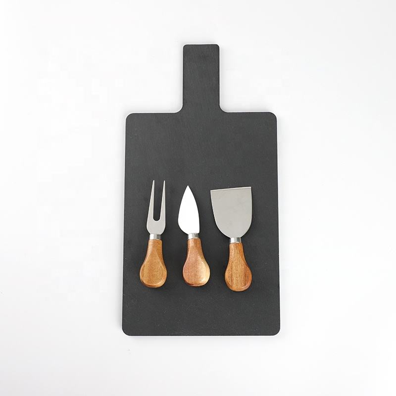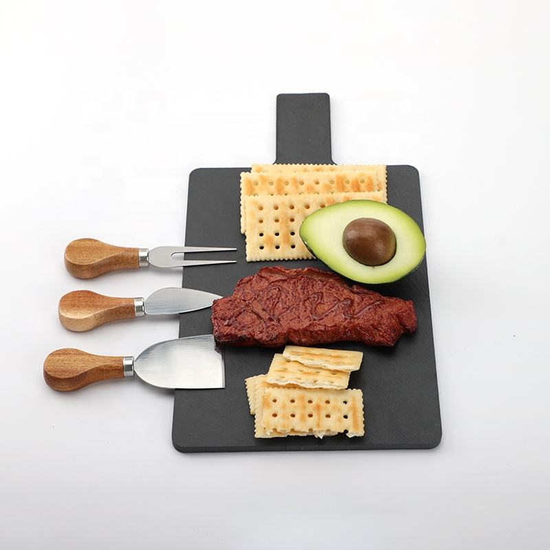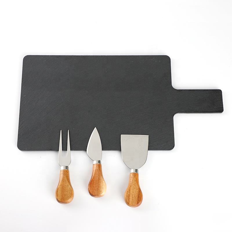 ชุดมีดหั่นชีสทำจากกระดานชนวนเป็นมิตรต่อสิ่งแวดล้อมพร้อมด้ามจับสำหรับจัดแสดงเค้กชีสผลไม้