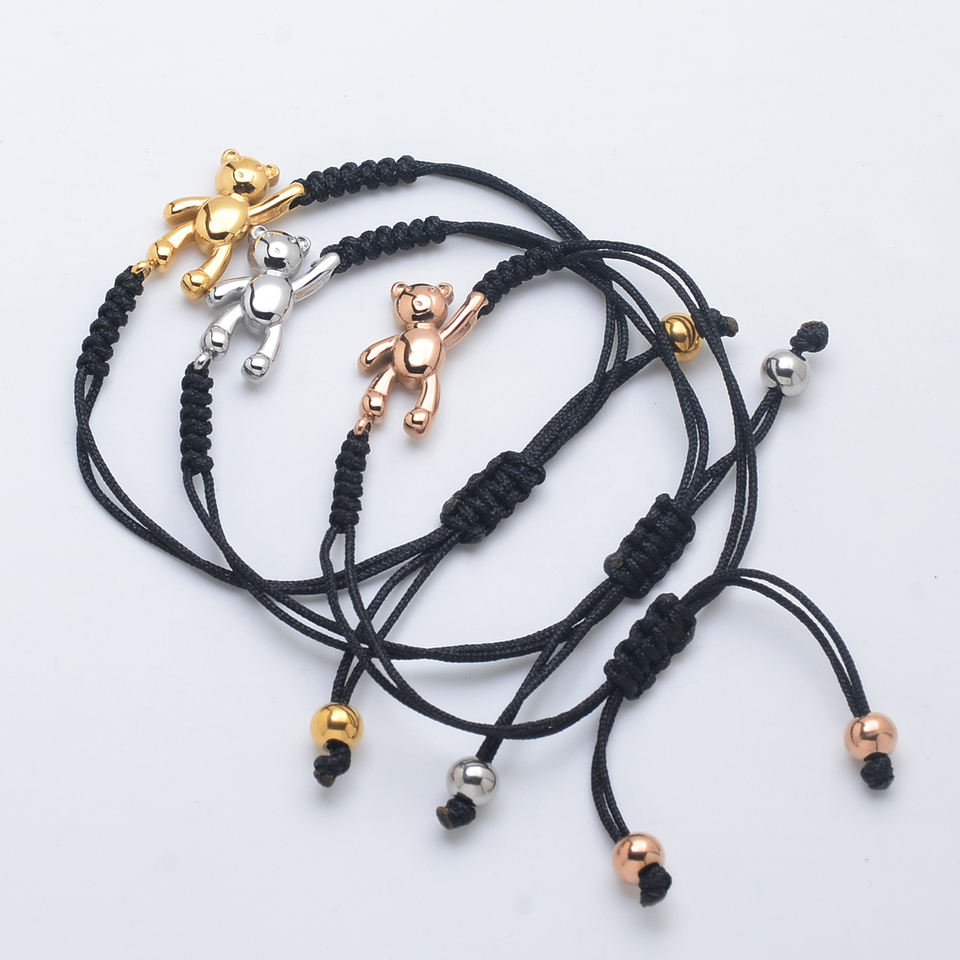 สร้อยข้อมือแฟชั่นสแตนเลสสตีลรูปหมีเท็ดดี้ ขายดีปี 2025 สำหรับผู้หญิง สายเชือกสีดำปรับได้