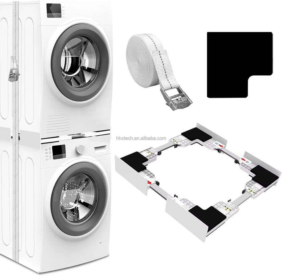 ชุดวางซ้อนเครื่องซักผ้าและเครื่องอบผ้าแบบปรับได้ 46-66 ซม. รุ่นขายดีปี 2025 พร้อมโครงเชื่อมต่อและสายรัดแบบมีตัวล็อค