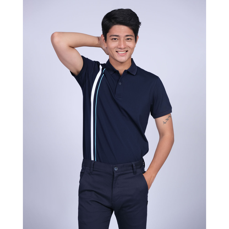 เสื้อโปโลมีท่อหลายเส้นตัดกันด้านหน้า