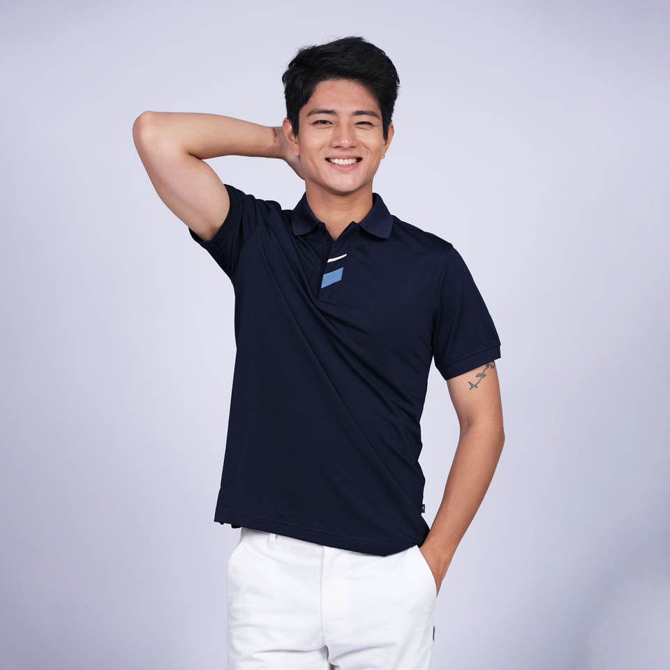 เสื้อโปโลมีความคมชัด2เส้นที่กระเป๋า