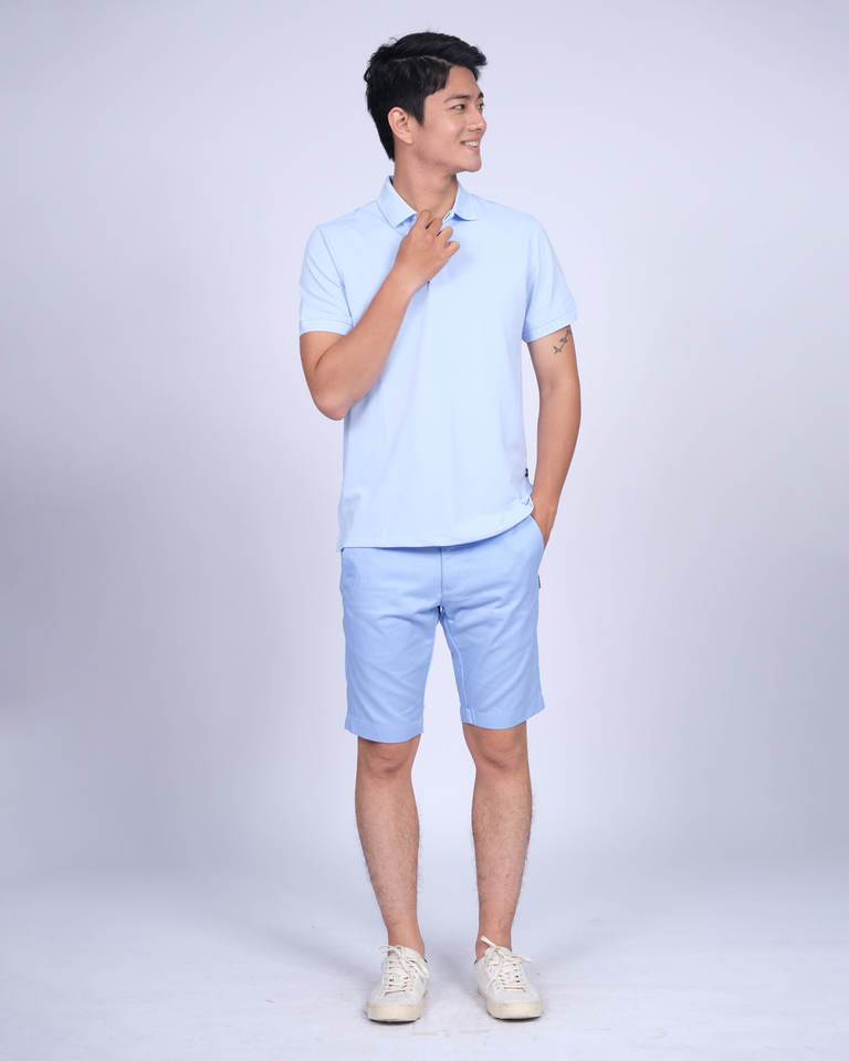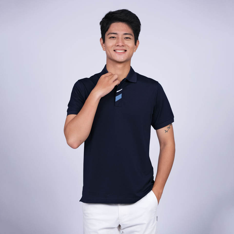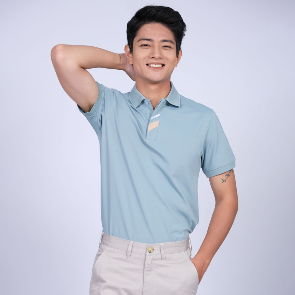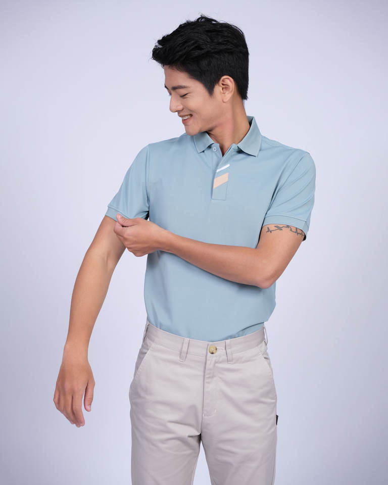 เสื้อโปโลมีความคมชัด2เส้นที่กระเป๋า