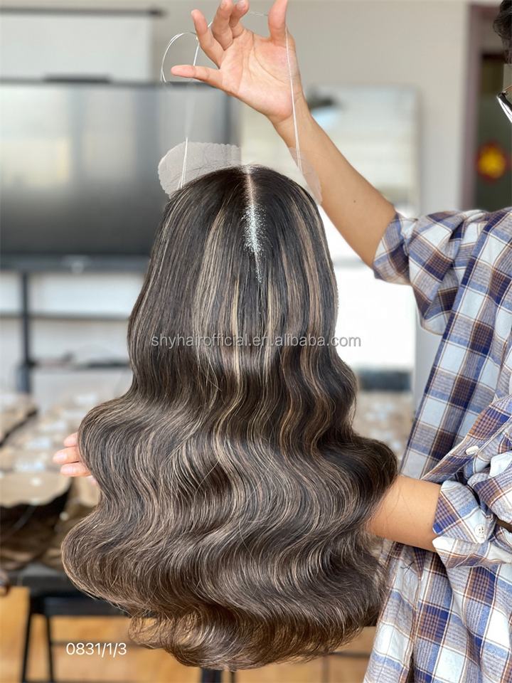 วิกผมแท้แบบมีลูกไม้ด้านหน้าวิกผมลอนธรรมชาติสีไฮไลต์ด้านหน้าขนาด8*8 2025