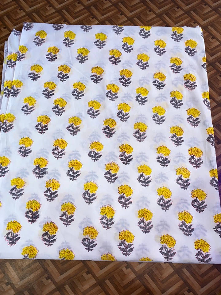 ชุดเดรสสำหรับผ้าม่านผ้าฝ้าย100% ลายดอกไม้อินเดียสีเหลืองสีเทา2025ระบายอากาศได้ดีงานประดิษฐ์