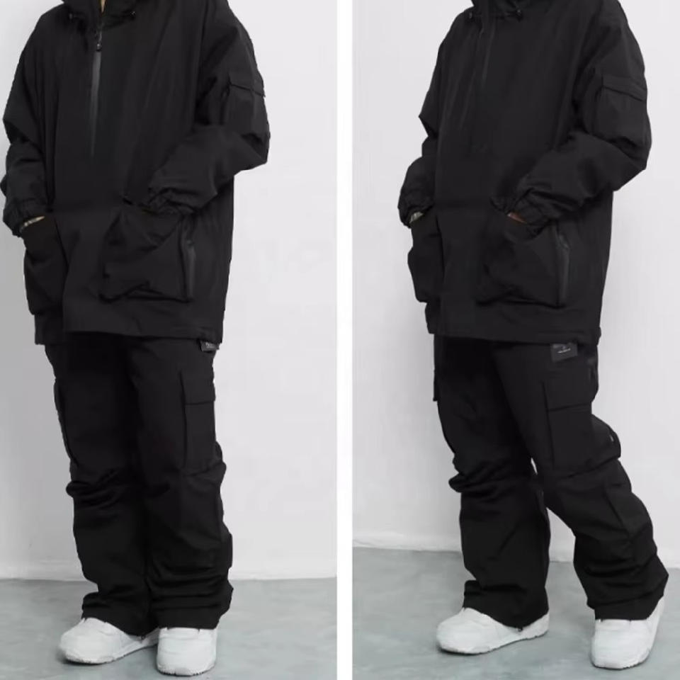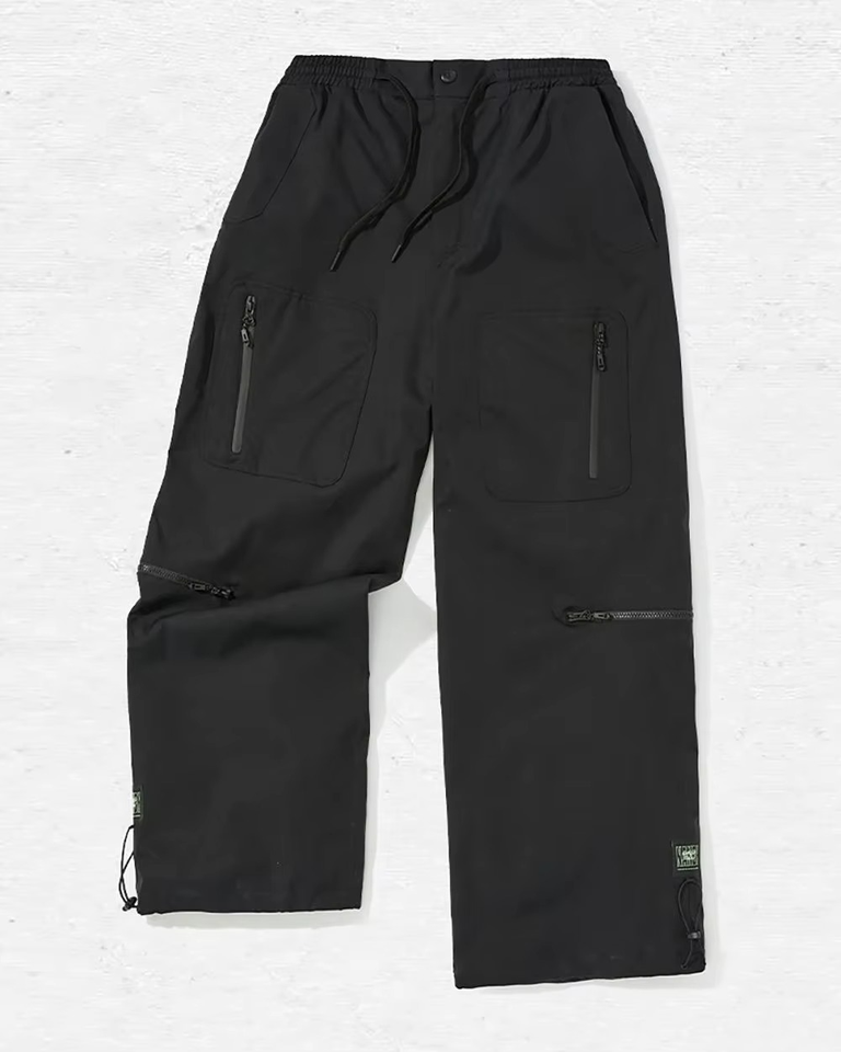 กางเกงสกีสโนว์บอร์ดแบบมีฮีตเตอร์ รุ่นฮอตสตรีทแวร์ ปี 2025 ไซส์ใหญ่พิเศษ กันน้ำ กันลม เป็นมิตรกับสิ่งแวดล้อม สีดำ แบบคาร์โก้ ขากว้าง ปรับแต่งได้