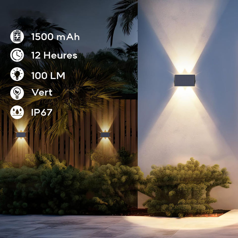 ไฟติดผนังโซลาร์เซลล์ LED สำหรับสวน ปี 2025 มาตรฐานกันน้ำ IP65 ให้แสงอบอุ่น พร้อมเซ็นเซอร์ตรวจจับแสงและระบบหรี่แสงได้