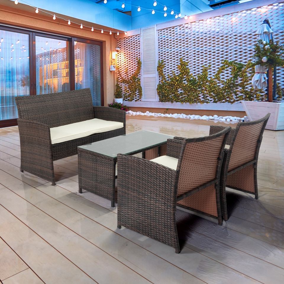 2025 ipro ชุดเครื่องจักสานหวายสำหรับลานสวนกลางแจ้งแบบพรีเมี่ยมแบบทันสมัย4ชิ้นพร้อมคุณสมบัติทนรังสียูวีทุกสภาพอากาศ