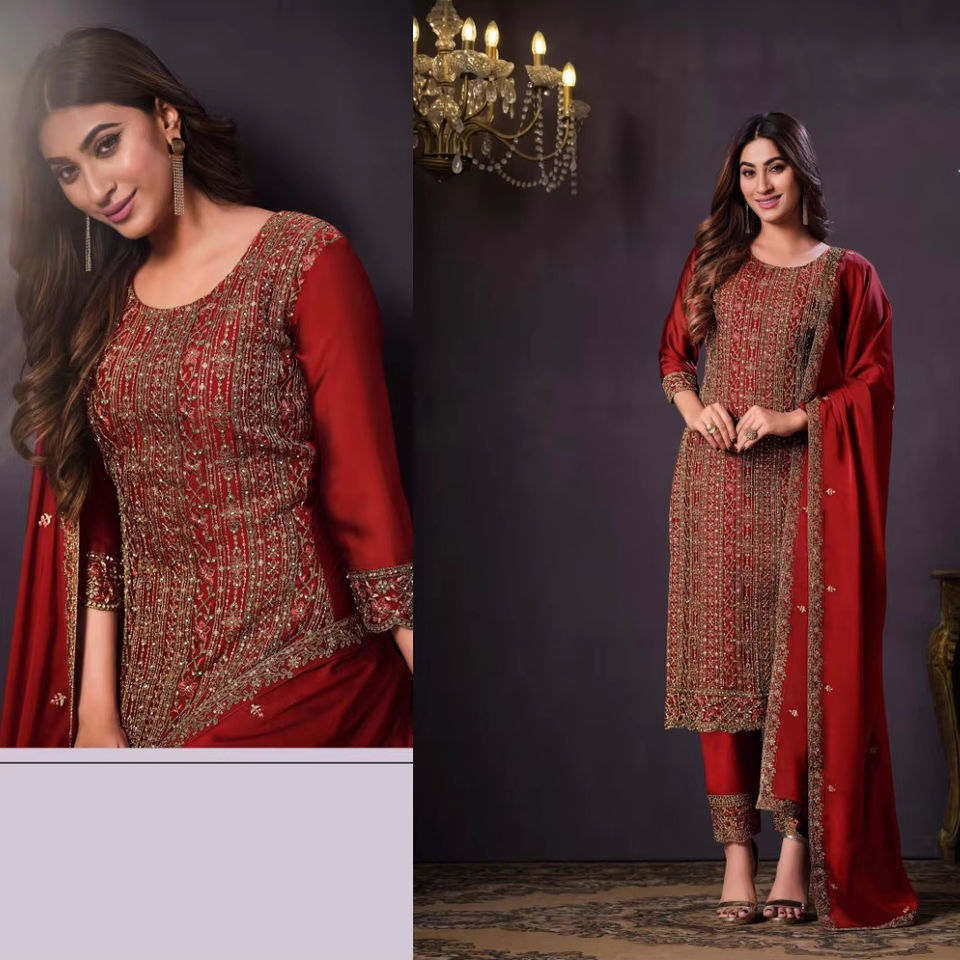 ผ้า Dupatta:Rangoli หนักหนักกับลำดับการเข้ารหัส emb. ทำงาน