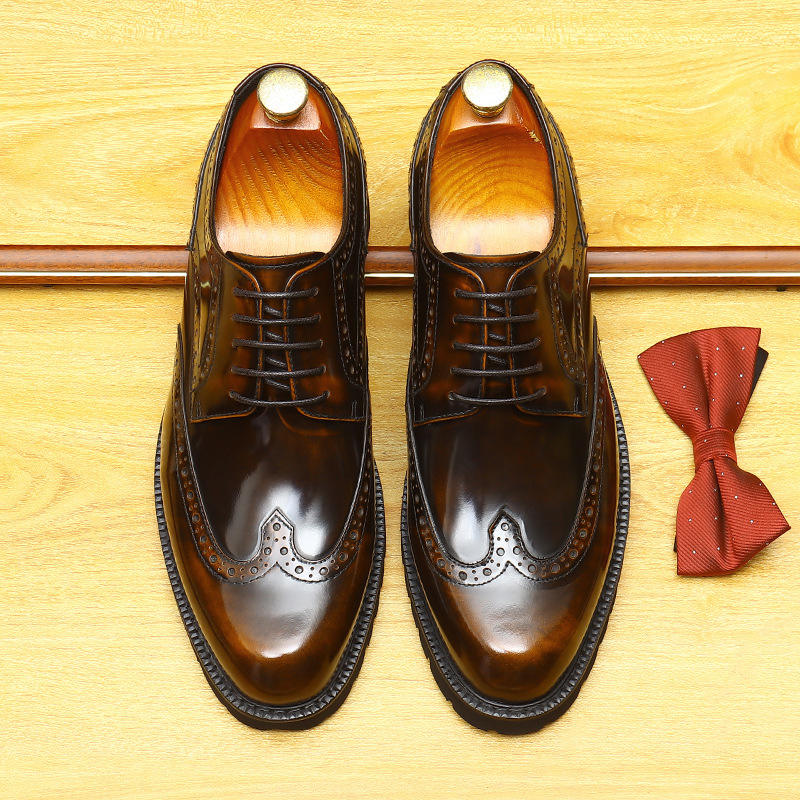 รองเท้าหนังแท้คุณภาพพรีเมียมสไตล์อิตาลี ปี 2025 สำหรับผู้ชาย แบบผูกเชือก สีดำและสีน้ำตาล ขายส่ง รองเท้าเดรสผู้ชาย