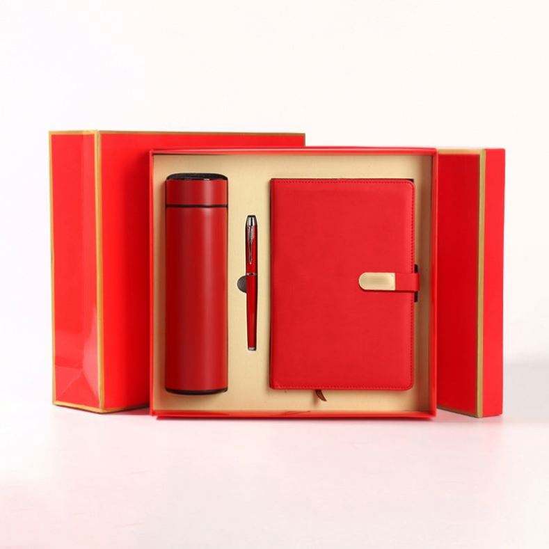 ชุดของขวัญธุรกิจ 3 in 1 สมุดโน้ตสีแดงพร้อมปากกา ของพรีเมี่ยมสำหรับปี 2025 จำนวน 2025 ชิ้น
