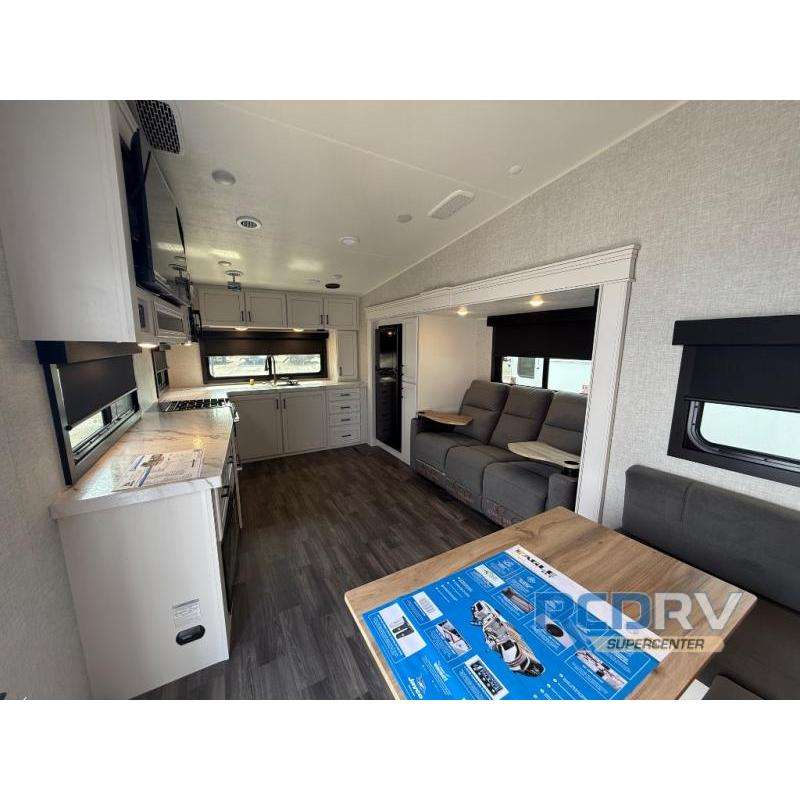 อุปกรณ์ตกแต่งภายในรถบ้าน Jayco Eagle HT 27MLC ปี 2025 ใหม่ พร้อมบริการติดตั้งระบบไฟ 50 แอมป์สำหรับเครื่องซักผ้า/อบผ้าแบบเตียงควีนไซส์ และถังเก็บน้ำสะอาดขนาด 52 แกลลอน