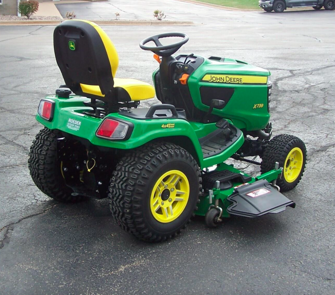 รถแทรกเตอร์จอห์นเดียร์ X739 ปี 2025 เครื่องยนต์ดีเซล 2 จังหวะ เครื่องตัดหญ้าเกรดอุตสาหกรรม ขนาดใบมีดสูงสุด 1000 มม. 24V 125 ซีซี ถังเก็บหญ้า 100 ลิตร กำลังไฟ 1000 วัตต์