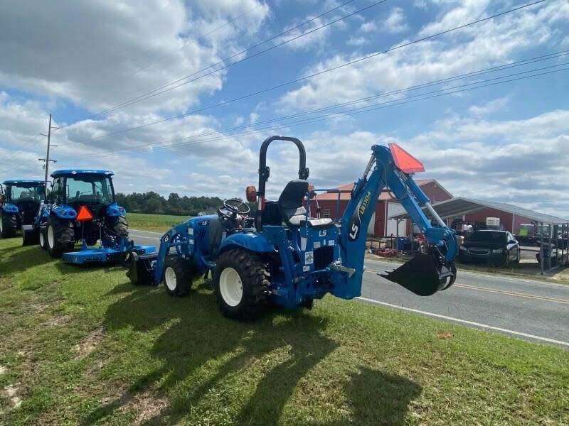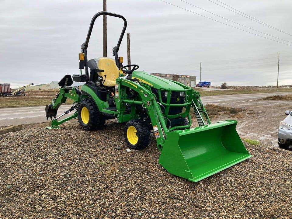 lawn mower with front loader and backhoe