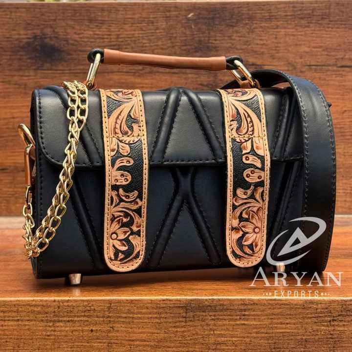 Designer Hand Tooled Quilted Crossbody Flap Bag