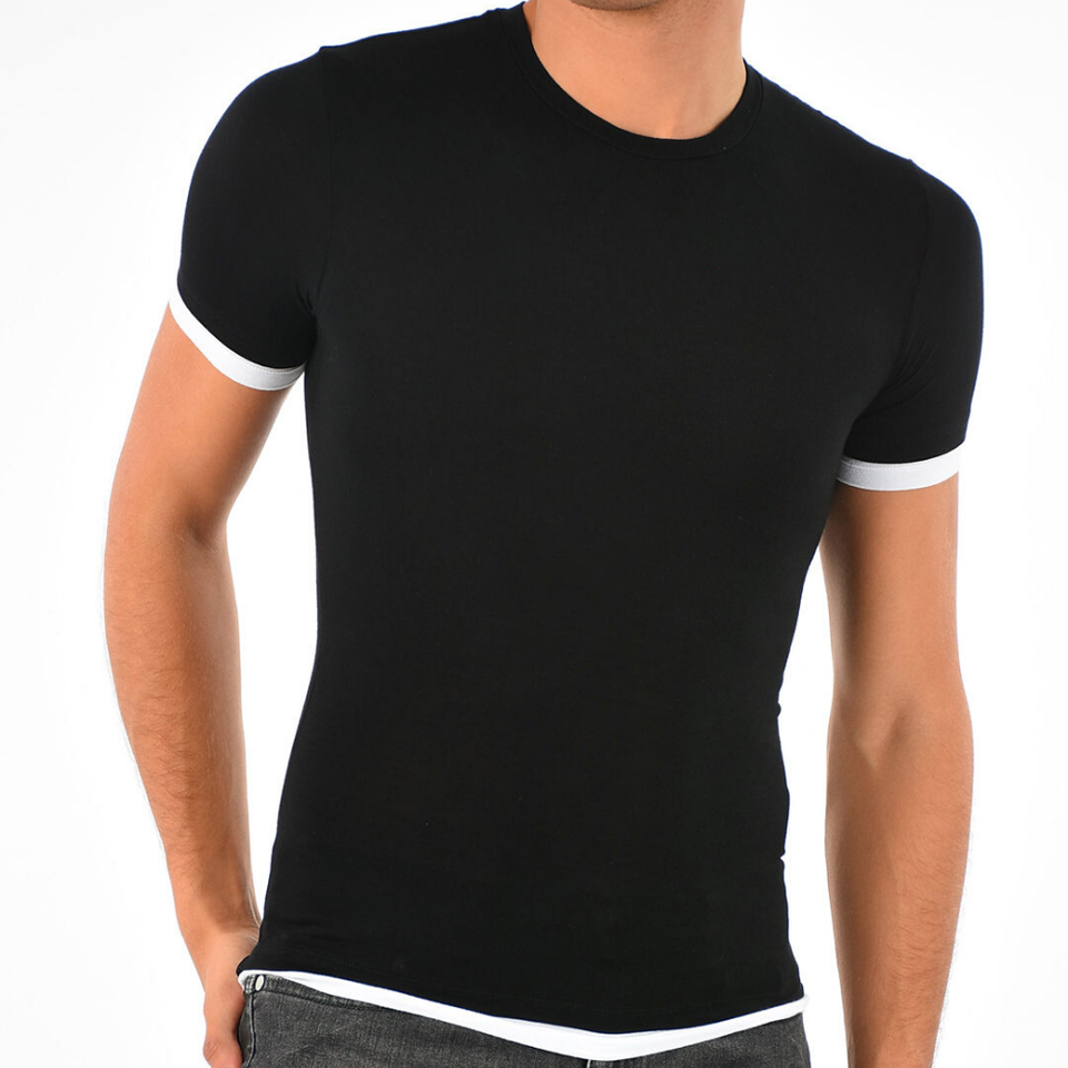 2025เสื้อยืดคุณภาพสูงสำหรับผู้ชายเสื้อผ้าลำลองทรงสลิมฟิตแขนสั้นสีตัดกันดีไซน์ล่าสุด