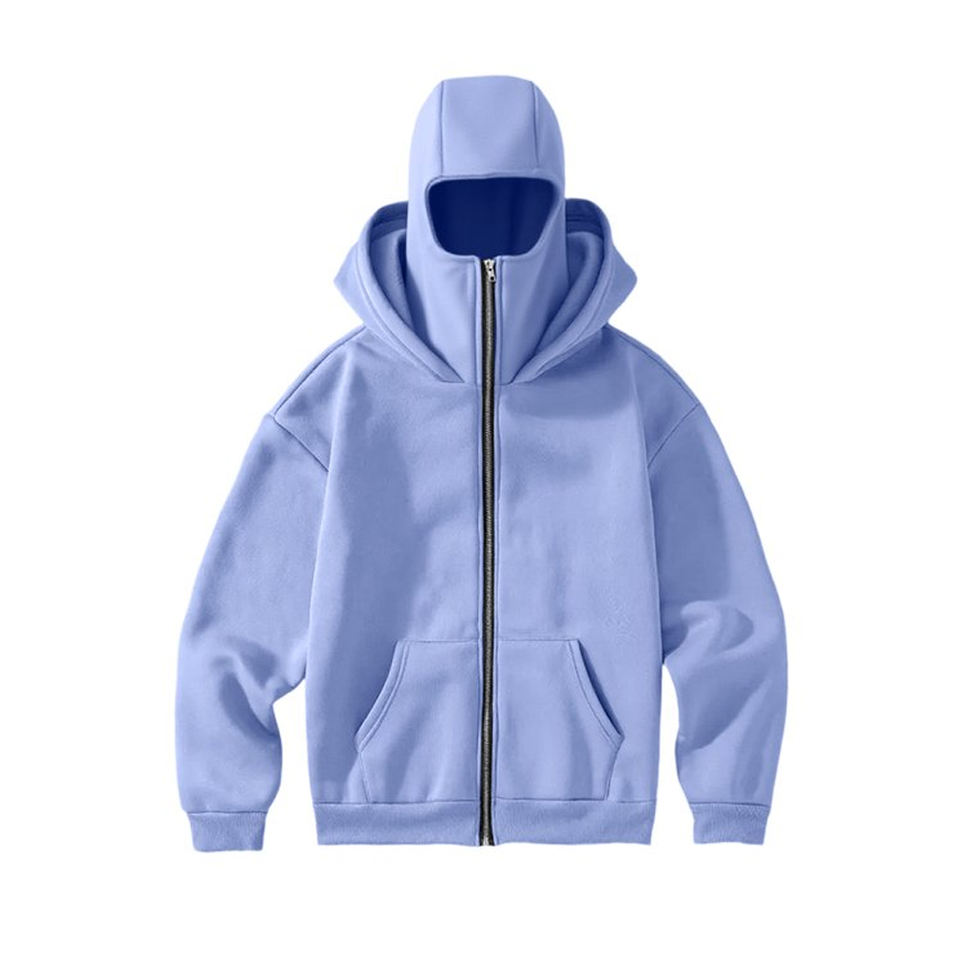 เสื้อฮู้ดซิปบาลาคลาวาแบบสั่งทำ ดีไซน์ล่าสุดปี 2025 ผ้าคอตตอน 450gsm คุณภาพสูง สไตล์สตรีทแวร์ สำหรับผู้ชาย แบบเรียบ มีซิป ฮู้ดดี้นินจา