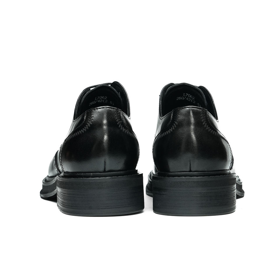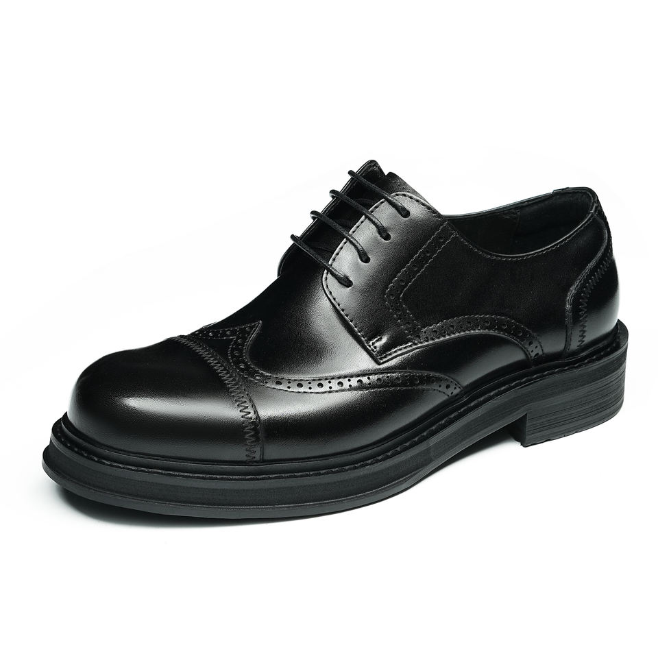 2025เดรสสีดำของผู้ชายหนังแท้อังกฤษสุดหรูรองเท้าหัวแหลมพื้นรองเท้าพียูแบบสวมสำหรับฤดูใบไม้ผลิดีไซน์ล่าสุด