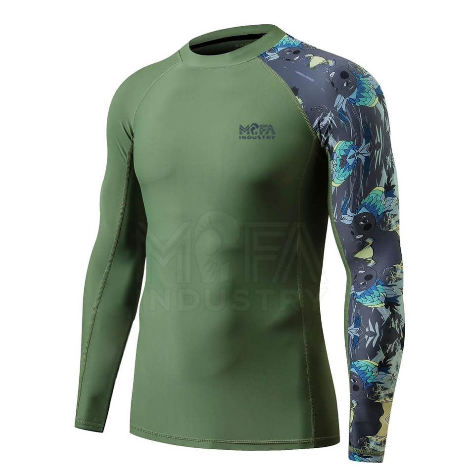 ชุดออกกำลังกายแขนยาวของผู้ชายชุดป้องกันผื่น2025สีทึบดีไซน์ล่าสุด