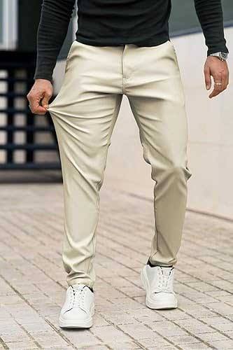 กางเกงหนังลำลองของผู้ชายมีกระดุมปิดปีกตรงโค้งลายขวางดีไซน์ล่าสุด2025