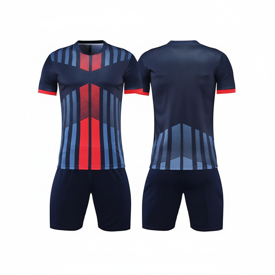ชุดฟุตบอลแบบซับลิเมชั่น ดีไซน์ล่าสุดปี 2025 ระบายอากาศได้ดี ชุดแข่งขันฟุตบอลสั่งทำได้ ชุดทีมพร้อมกางเกงขาสั้น ผ้าฝ้าย 100% ชุดฝึกซ้อม