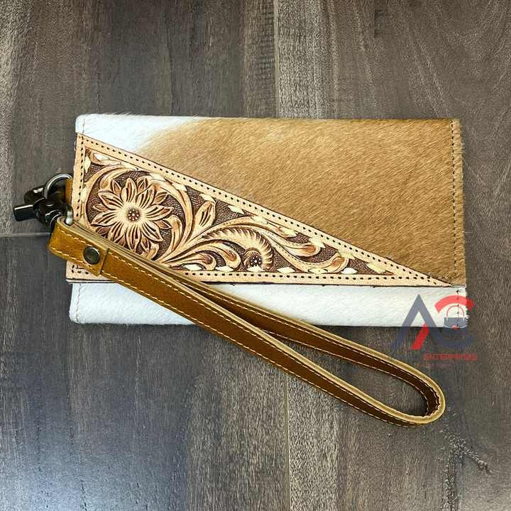 Hand Tooled Cowhide Leather Wristlet Wallet